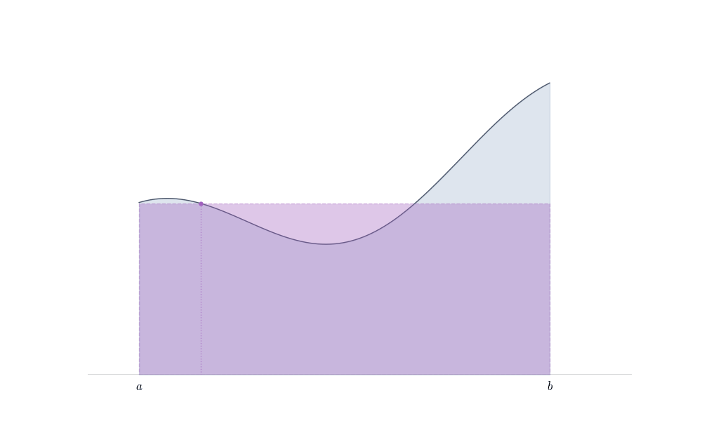 By the Intermediate Value Theorem (Calculus I), since f is continuous and takes values m and M, it takes every value in between. Thus there exists \xi \in [a,b] with f(\xi) = \frac{1}{b-a}\int_a^b f(x)\,dx, which rearranges to \int_a^b f = f(\xi)(b-a). \square