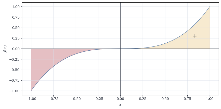 Example 9.6 (Integrating an Odd Function) Compute \int_{-1}^1 x^3 \, dx.